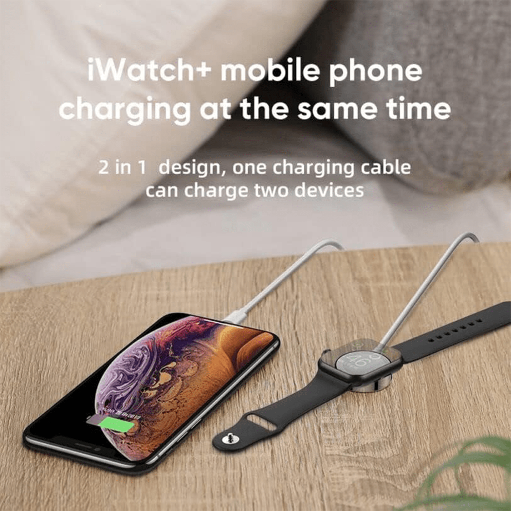 - 2-in-1 Charging Cable – Charges iPhone (Lightning) + Apple Watch together.